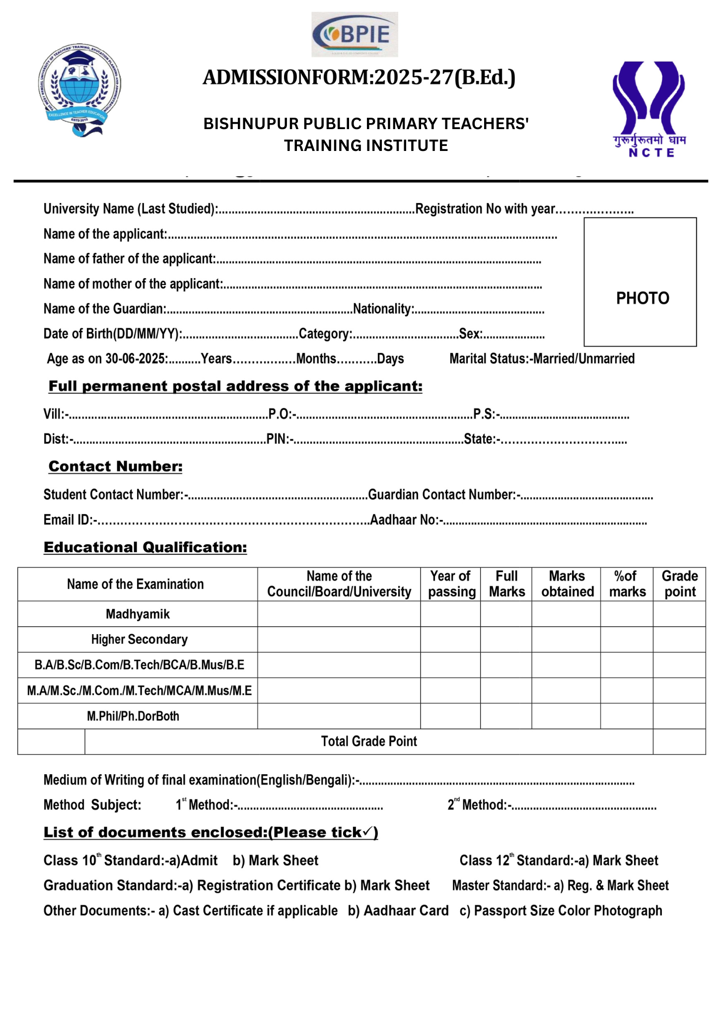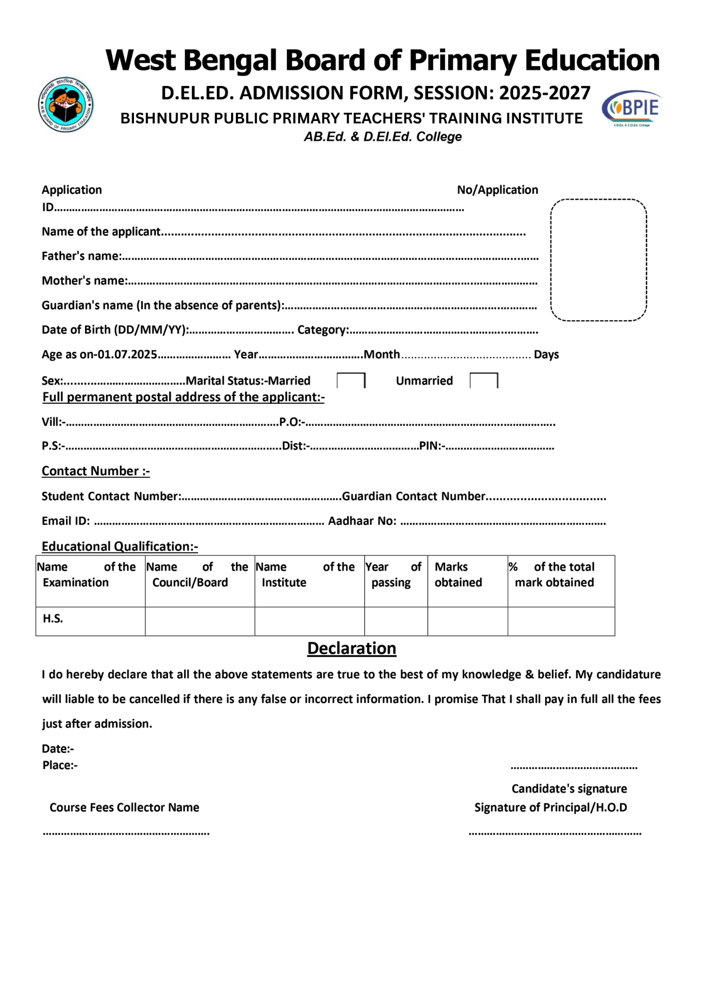 Bishnupur Public Primary Teachers’ Training Institute  Plot No – 68, 12 , Vill – Ramananda Nagar (Chougan ), PO – Bishnupur , Dist – Bankura , Pin – 722122